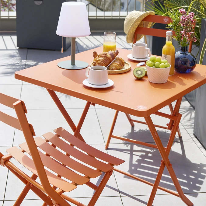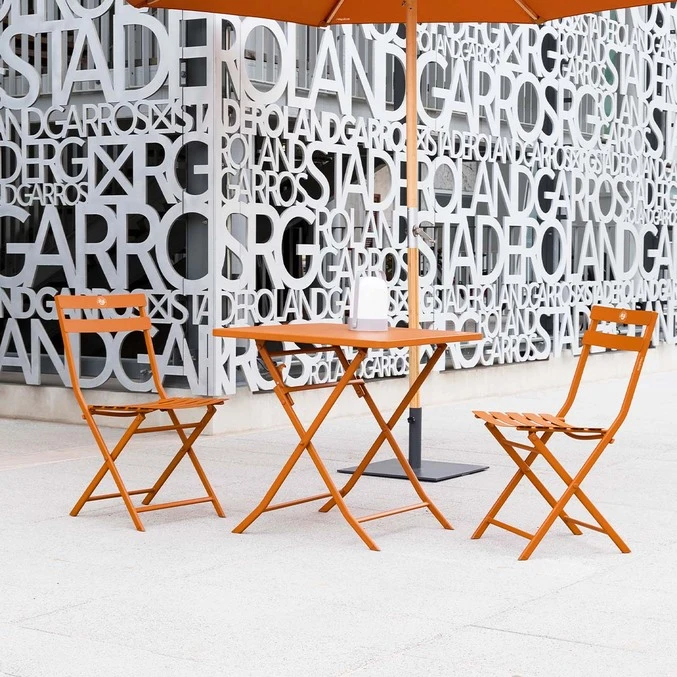 Associez vos chaises à une table carrée Hespéride x Roland-Garros pour former un ensemble déco harmonieux.