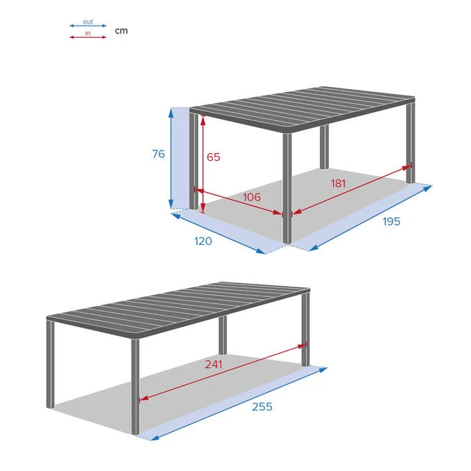 Cette table de jardin rectangulaire dévoile tous ses atouts une fois la rallonge automatique dépliée. En effet, ce meuble aux dimensions généreuses pourra accueillir jusqu’à douze personnes. Elle peut recevoir huit convives en configuration de base.