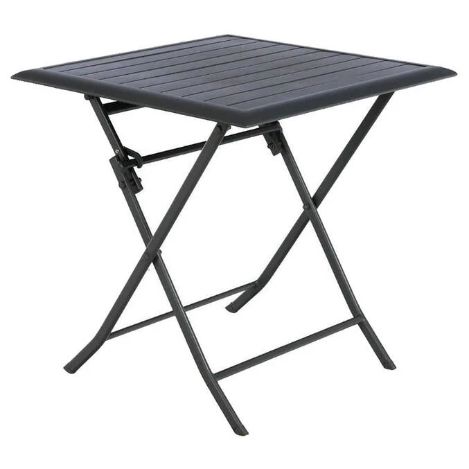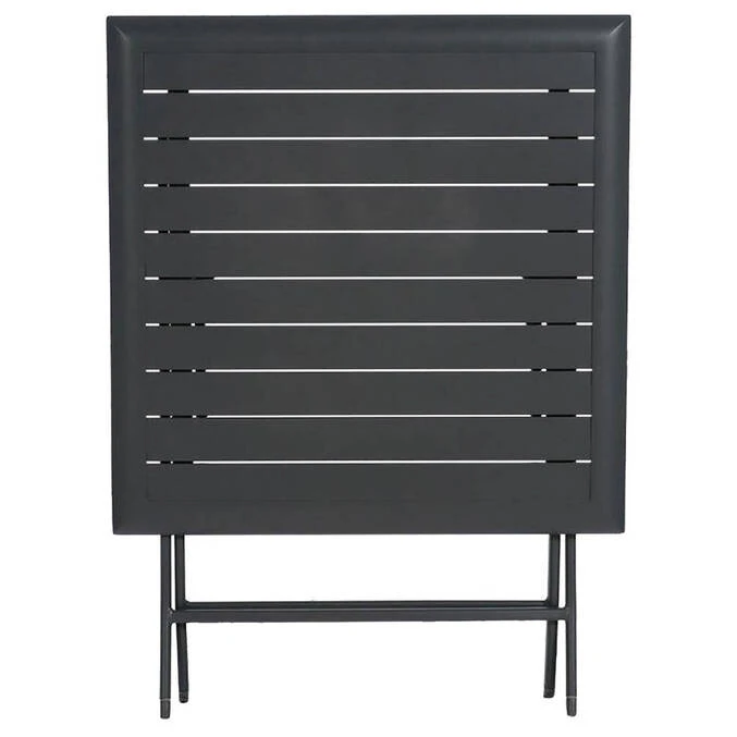 Réalisée en aluminium, cette table de forme carrée convient pour deux personnes. Sa surface rainurée est encadrée d’un large rebord qui apporte une touche contemporaine à ce mobilier de jardin.